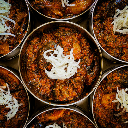 Roo was the youngest of 8 siblings, and learned to cook for her family at age 10 in when her mum fell ill. Moving to Brighton to be closer to her son Nish. She would often make Nish and Pip (Nish's wife) a flavour packed tiffin as a care package when they were working late. "Would you like a deliver-roo roo?" she would ask, Nish and Pip said yes. Soon more and more busy folk were keen for a beautiful night off, and Majahma was born.