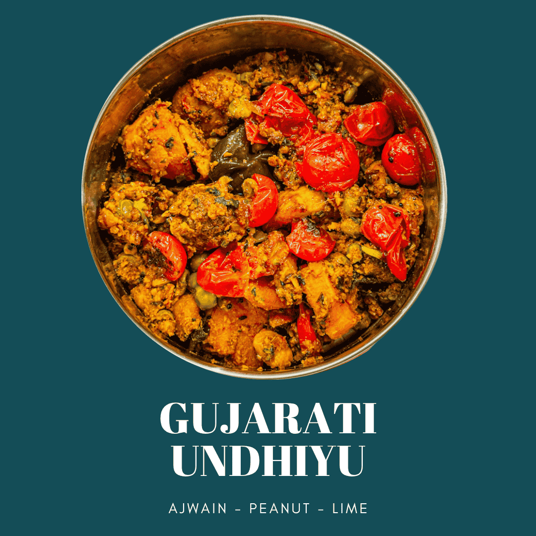 A medley of seasonal vegetables, fenugreek dumplings, and aromatic spices — a winter classic from Gujarat, served at celebrations. Tastes great with a generous dollop of yoghurt.