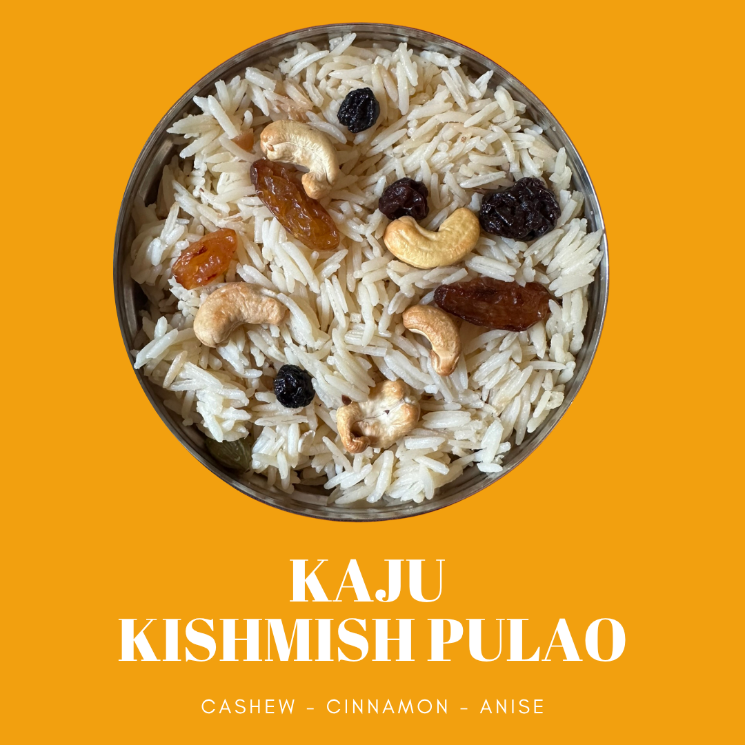 Fragrant basmati rice cooked with cinnamon, clove, and bay, topped with golden cashews and plump raisins for a touch of sweetness.