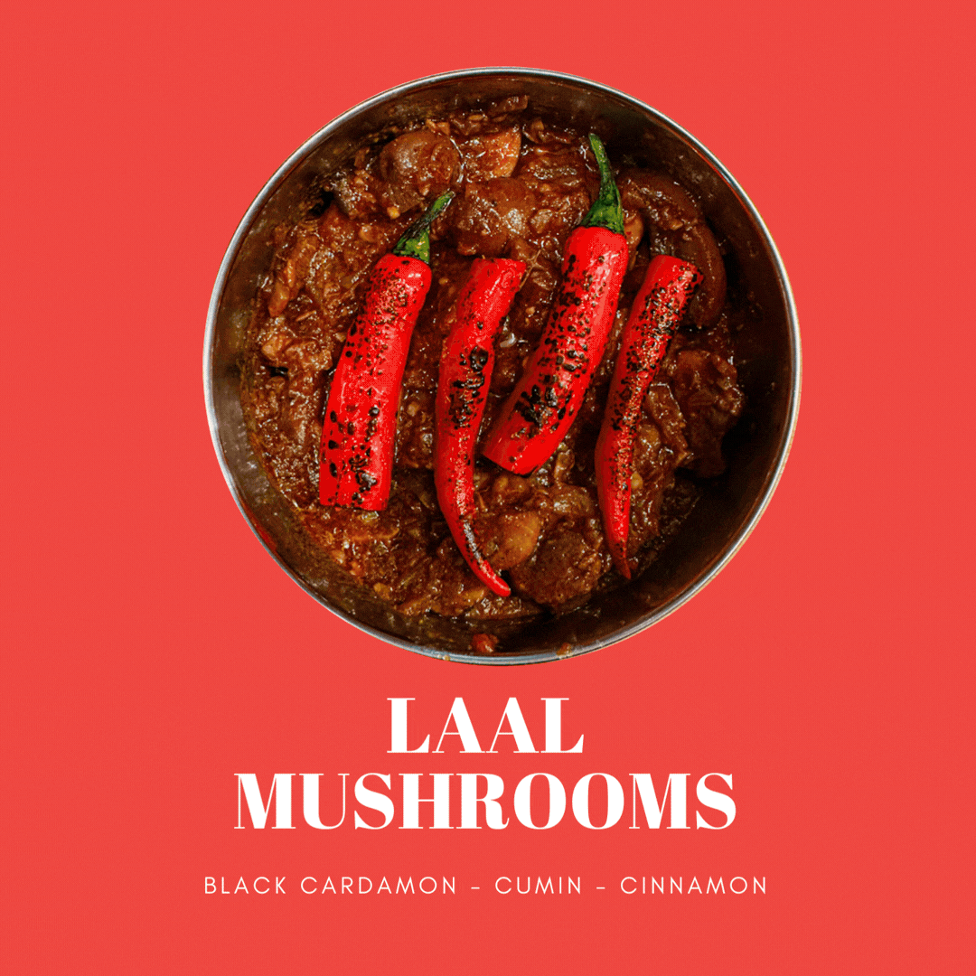 Our version of the Royal celebration dish, "Laal Maas", Fiery, and bold. Buttery mushrooms, cooked in a rich red sauce made with with our special roasted Rajasthani masala.